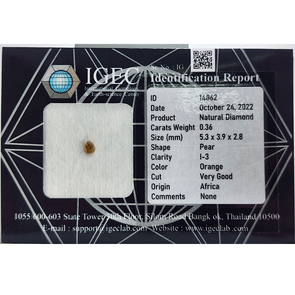IGEC Certified 0.36cts Orange Pear Natural Loose Diamond 14862