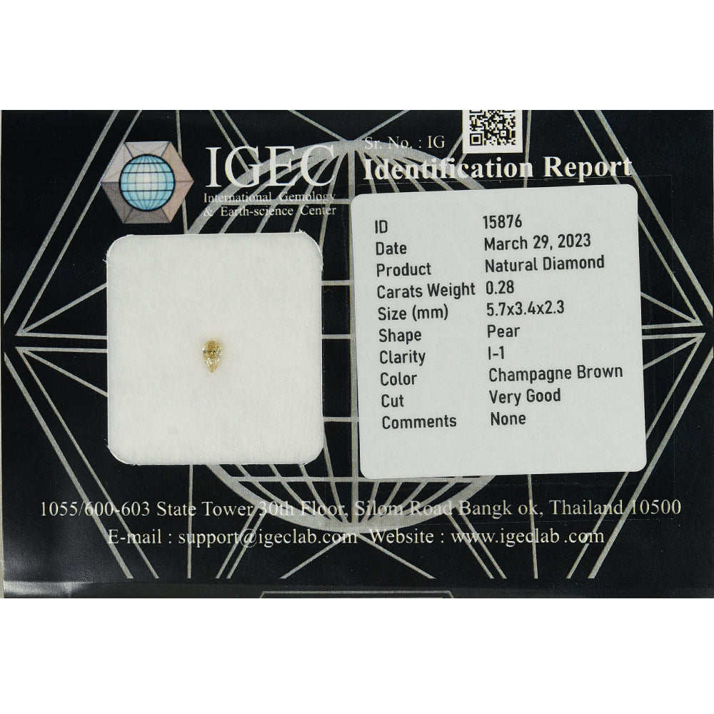 IGEC Certified 0.28cts Champagne Brown Pear Natural Loose Diamond 15876