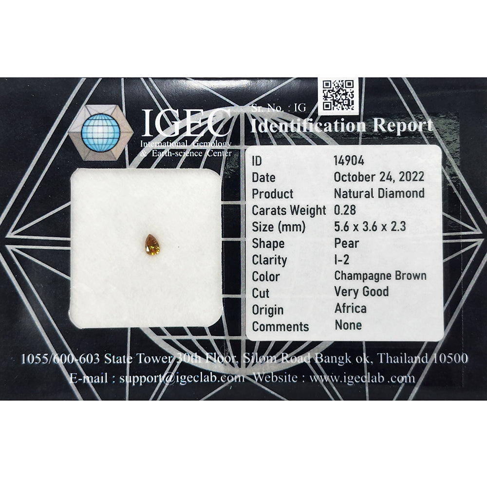 IGEC Certified 0.28cts Champagne Brown Pear Natural Loose Diamond 14904