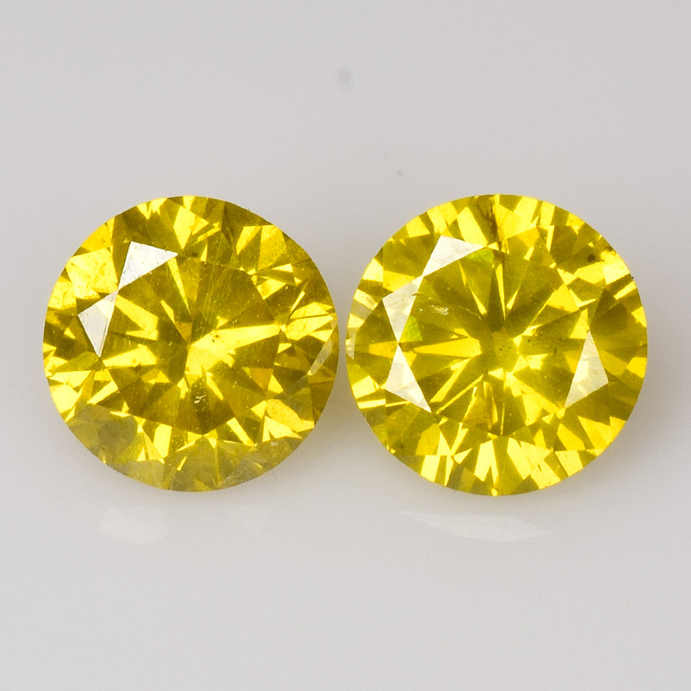 PAIR! 0.61cts 4.2-4.3mm Fluorescent Yellow Natural Loose Diamonds "SEE VIDEO" YTP-17